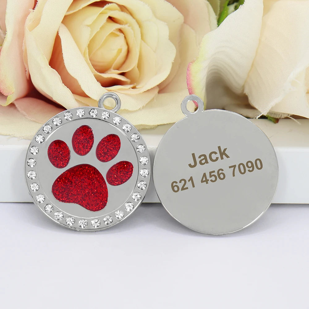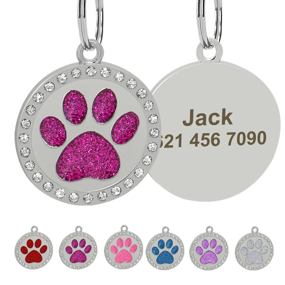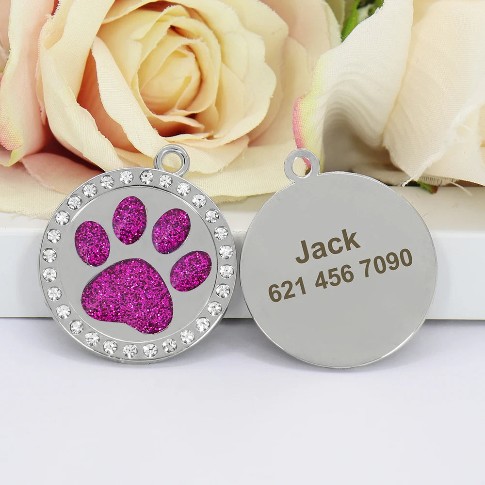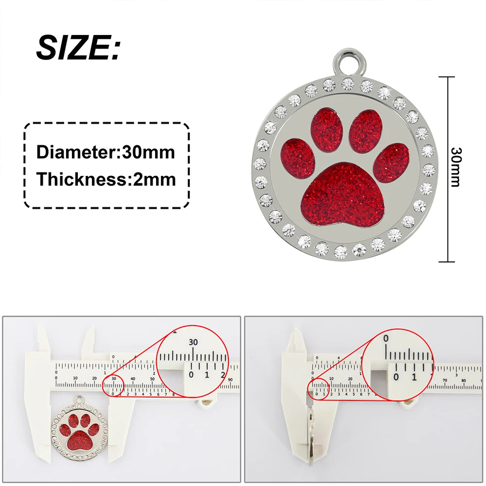 Name: Pet Dog ID Tag Custom Crystal Puppy Cat ID Tags Dogs Collar Accessories Pendant Personalized Dog Anti-lost Engrave Name Tags Color: Rose/Silver/Green/Pink/Red/Purple/Gold/BlueSuit for: Small Medium Large Sized DogDesign: Paw shape/Round/Heart shape
