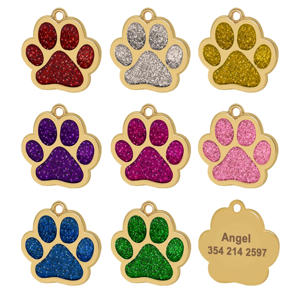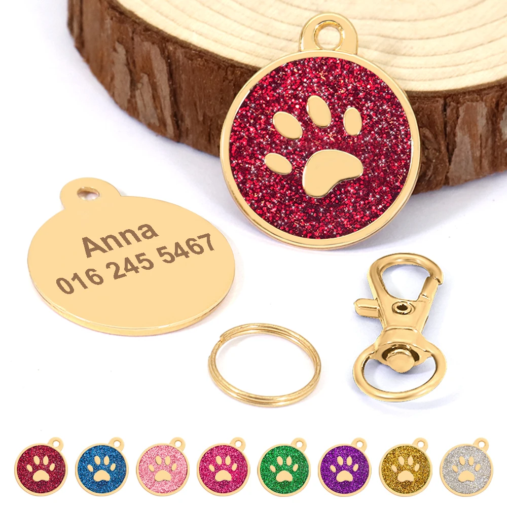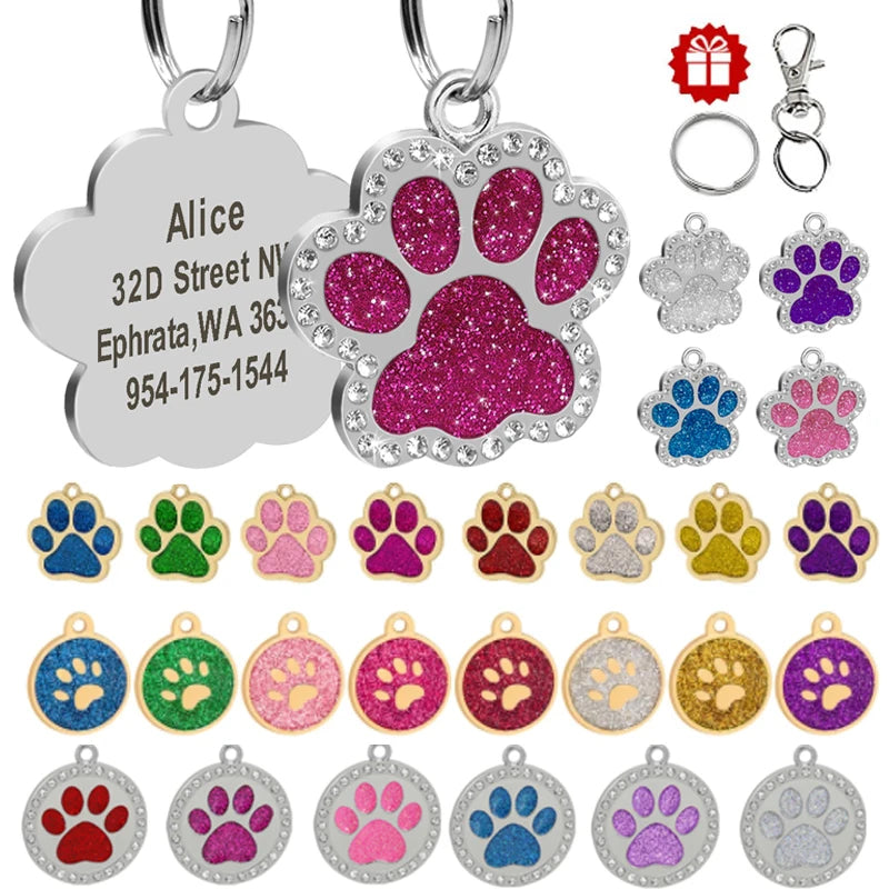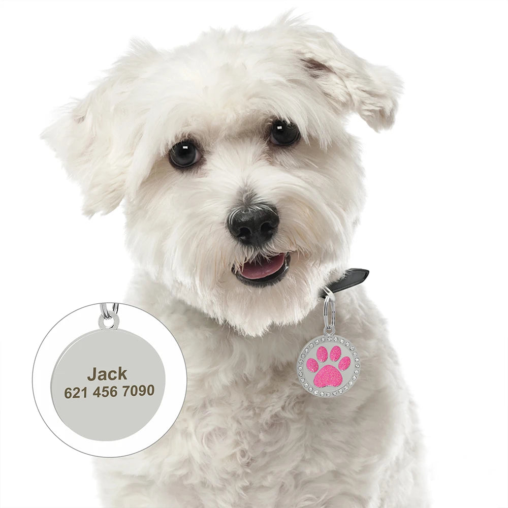 Name: Pet Dog ID Tag Custom Crystal Puppy Cat ID Tags Dogs Collar Accessories Pendant Personalized Dog Anti-lost Engrave Name Tags Color: Rose/Silver/Green/Pink/Red/Purple/Gold/BlueSuit for: Small Medium Large Sized DogDesign: Paw shape/Round/Heart shape